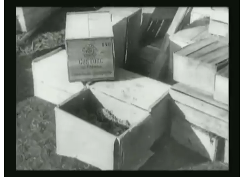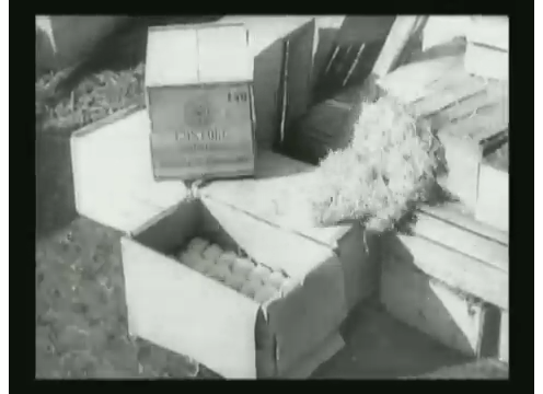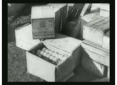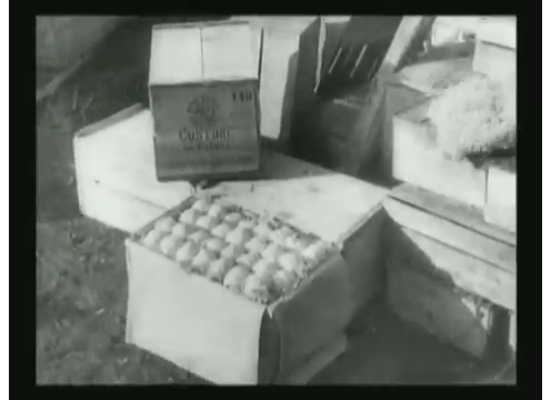Следующая анимационная сцена более продолжительная. В ней режиссер демонстрирует рабочий процесс — упаковка фруктов и их подготовку к перевозке.