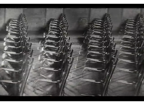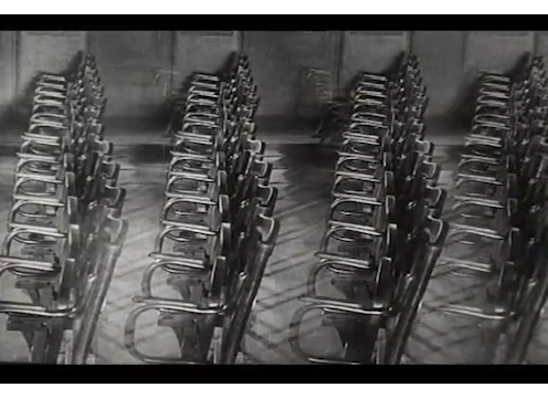 Первая анимационная сцена фильма является открывающей. В ней обыгрывается грандиозность и торжественность предстоящего события — кинопоказа. Кино «оживляет» стулья в кинотеатре, которые приветствуют первых зрителей.