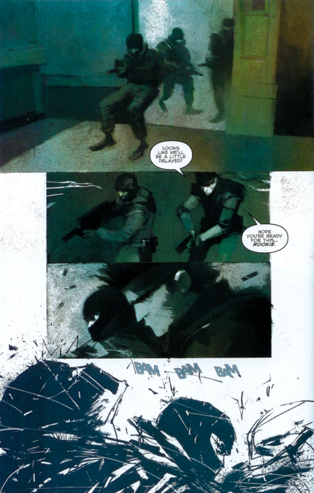 Сами боевые сцены, которых в комиксе немалое количество, изобилуют хаотичностью и смешением техник, удивительно наглядно передавая читателю темп перестрелки.