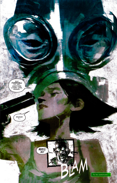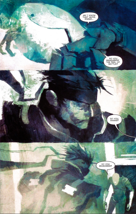 В работе над графическим романом по серии игр «Metal Gear Solid» Эшли Вуд продемонстрировал широкий спектр своих технических приемов: от живописного рисунка формами без «лайна» до жестких, контрастных и графичных линий. Эта разность выбранных методов визуальной передачи истории не случайна, а вполне осмысленна и поэтому органична.