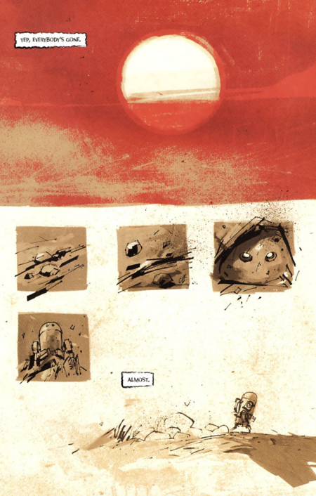 В отличие от «живых» людей, зомби обретают детализированную мимику, уродливую и пугающую, но более подвижную, чем у других персонажей. Зомби нарисованы хаотичнее и грязнее и роботов и людей, чем отталкивают с одной стороны и привлекают внимание — с другой. В этом комиксе роботы, люди, зомби смешиваются, а изначальные функции размываются под воздействием среды. Роботы становятся более человечными, чем «бывшие люди», и это вновь поддерживает постгуманистические принципы и взгляды на будущее человека.