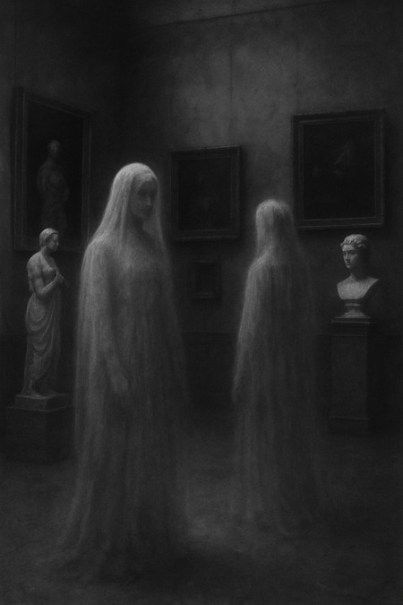 Призрачность усиливается тем, что египетское искусство изначально создавалось не для взгляда, а для вечности. Скульптуры с застывшими глазами не предназначались быть увиденными миллионами туристов. Погребальные маски не должны были находиться под стеклом, разглядываемые через объективы телефонов. Фрески должны были пребывать в глубине гробницы, где вечная тьма и отсутствие взгляда были частью ритуальной экологии. Когда эти объекты оказываются в музеях, они теряют не только пространство, но и предназначение. Они продолжают существовать, но не там, где должны. И это смещение состояния вновь рождает ощущение призрака — не как духа, а как чего-то неправильно присутствующего, словно объект удерживается в потоке времени, которому он не принадлежит.