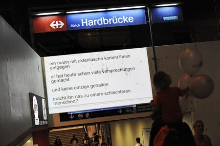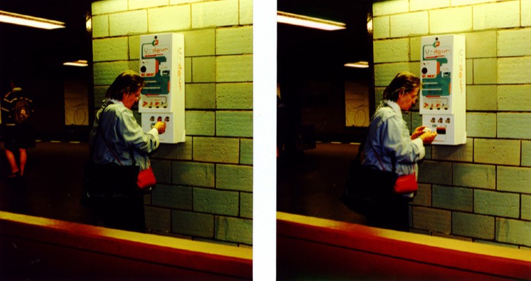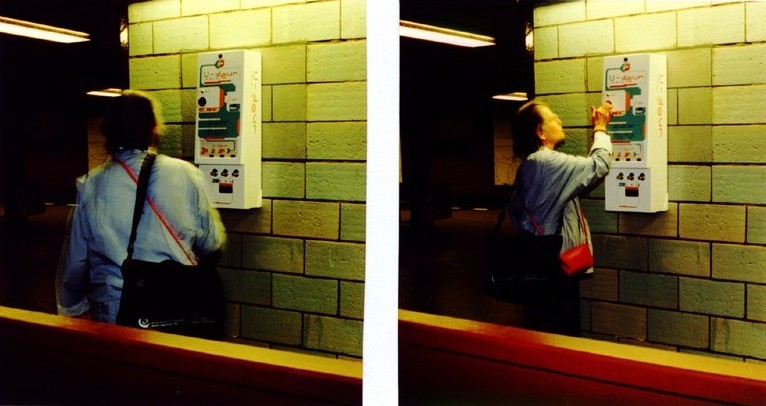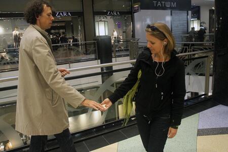 Хельгард Хауг (Rimini Protokoll), U-deur, Берлин, 2000: прохожий покупает парфюм