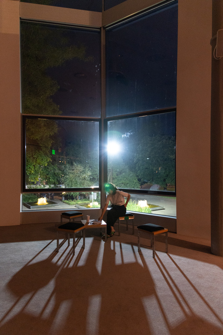 Важно и то, что прежнее коллективное переживание трансформируется в интимное. То, что раньше разделялось многими, теперь принадлежит одному и через это становится более хрупким, телесным, персонализированным. Звуковые инструкции создают ощущение близости: голос не просто ведёт, он шепчет изнутри пространства, создавая доверительный канал между зрителем и архитектурой театра.
