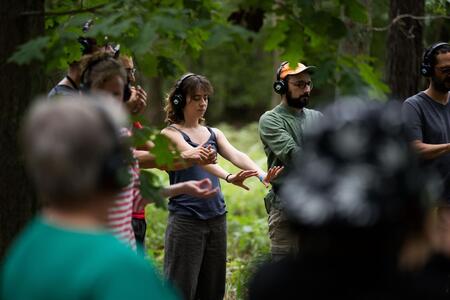 «Natures Vivantes» — это пятичасовая театральная прогулка по природному парку, где ландшафт разбивается на «сценографии», а студенты-исполнители проводят эпизоды, встречи с людьми и животными, создавая серию сцен и ситуаций, встроенных в конкретную местность. Проект позиционируется как «театральная экскурсия в природной среде», основанная на истории и биографии территории.