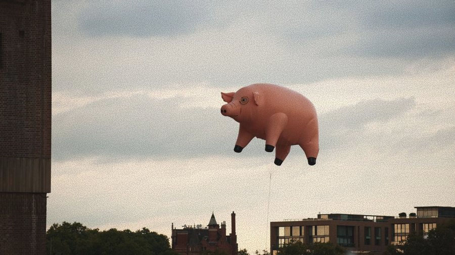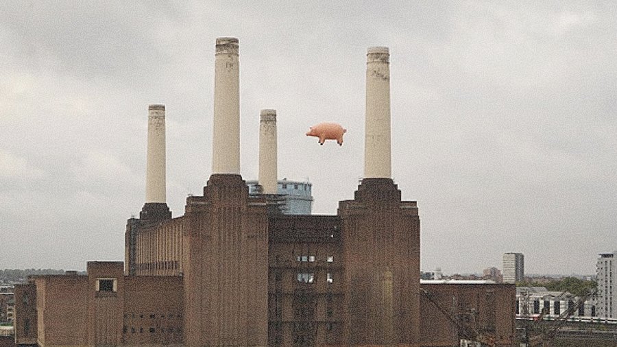 Надувная свинья, один из ключевых визуальных элементов концепции Animals, над электростанцией Баттерси, 1977. Источник: artisnotdead.blogspot.com