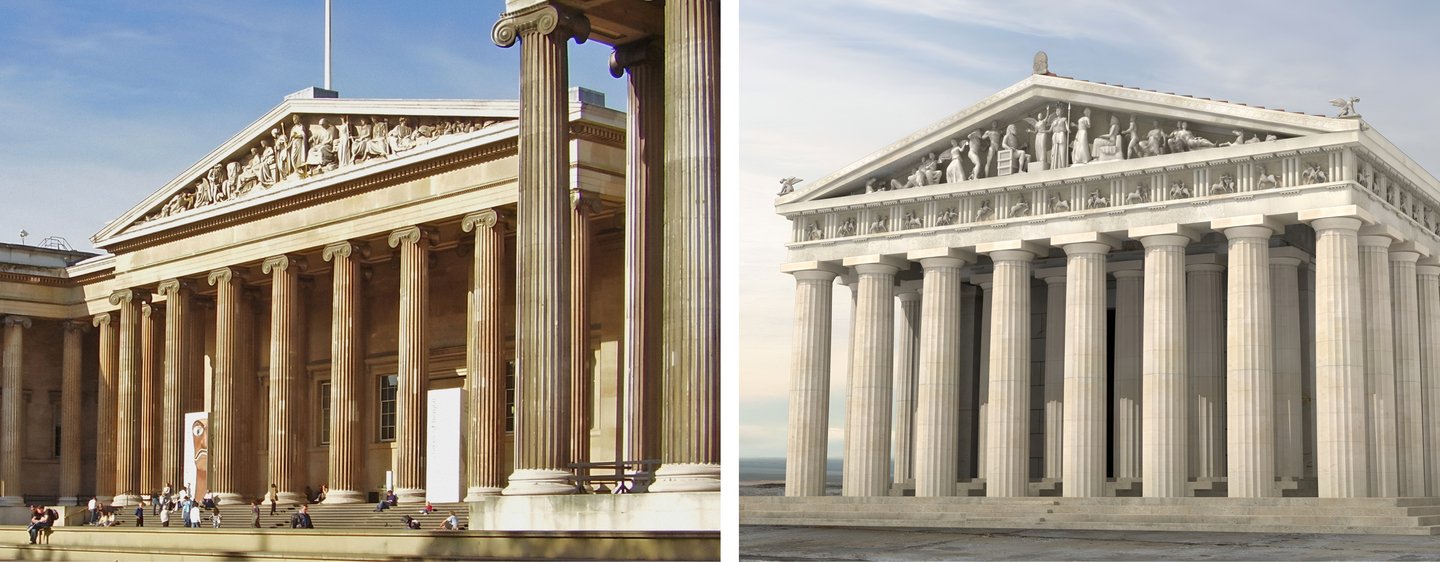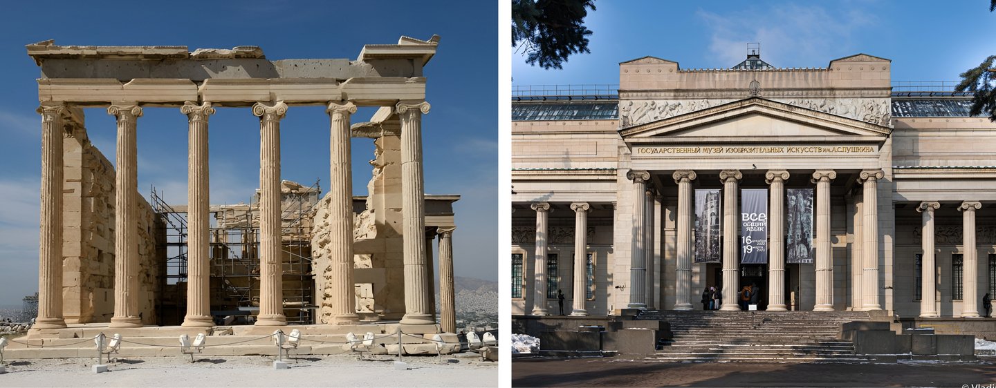 1. Британский музей, Лондон, 1823–1852 гг.; современная реконструкция храма Парфенон, Афины 2. Храм Эрехтейон, Афины; ГМИИ им. Пушкина, Москва, 1912 г.