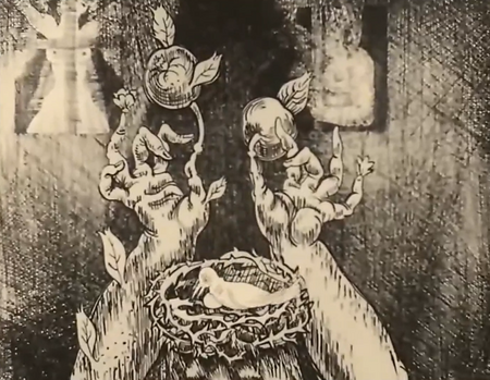 Примечательно противостояние адских и благостных образов в данной работе: так, в фильме явно присутствует фигура мессии, который спасает людей от музыки заклинателя змей. В терновом венке статуи живет птичка — символ святого духа. Образ же заклинателя похож одновременно на индийского уличного дрессировщика животных, так и на Гамельнского крысолова, который вывел зачарованных детей из города и с ними пропал.