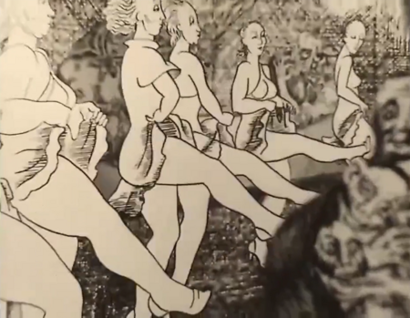 Женские образы достигают предела своей сексуализации в фильме «Город», когда герой попадает в пространство ночного клуба или борделя и видит обнаженных женщин, непристойно танцующих с мужчинами, извивающихся в эротических позах. Режиссер при всем критическом настрое к излишней сексуализации женского тела не изображает эротику чем-то полностью отвратительным. Силуэты женщин изображены в обычной манере фильма, их пластичные движения гипнотизируют зрителя.