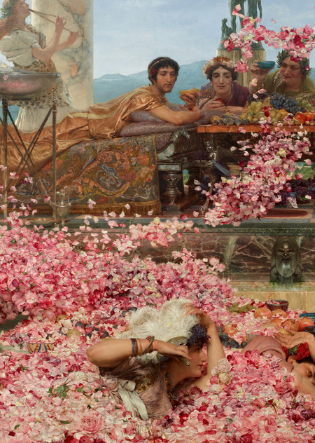 Розы здесь выступают не просто как красивый декор, а как символ удовольствия и чувственной любви. Для викторианской культуры была довольно привычной мысль о том, что избыток «сладкого» и приятного может обернуться вредом для человека. В картине Альма-Тадемы эта идея буквально материализуется: те же самые лепестки, которые ассоциируются с наслаждением, в огромном количестве превращаются в средство убийства.