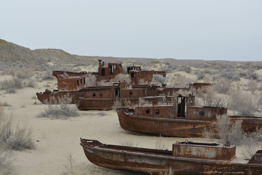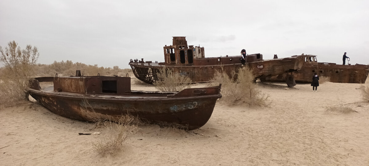 Там, где раньше в Муйнаке был морской порт, сейчас в пустыне стоит чуть более десятка проржавевших кораблей. Это место называют Кладбищем погибших кораблей, и оно давно уже стало душераздирающим памятником Аралу и пострадавшим жителям этого региона.