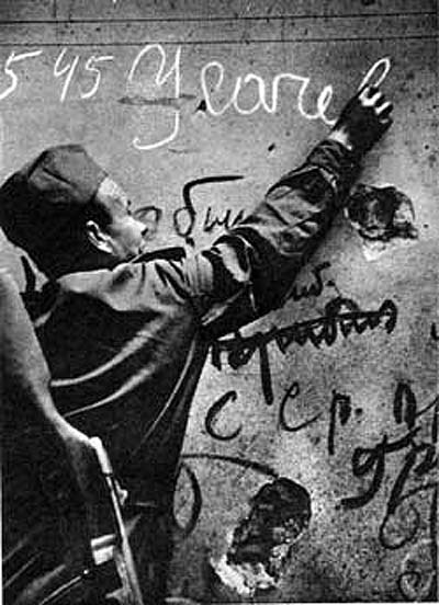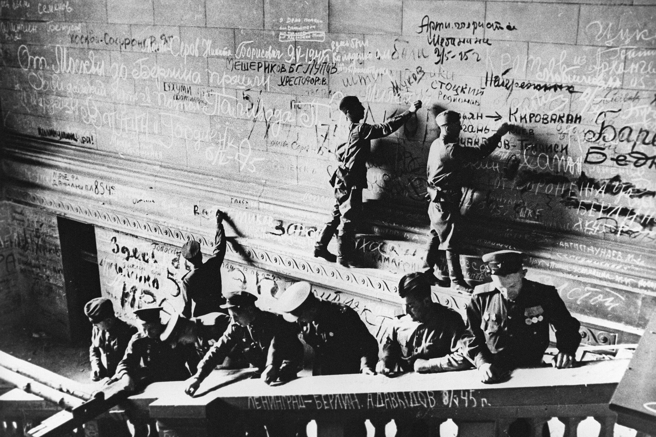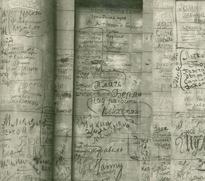 Многие из дошедших до Берлина солдат Красной Армии побывали на развалинах Рейсхтага, который стал символом поражения Германии в войне и оставили свой след потомкам, вырезав на стенах Рейхстага свои автографы.