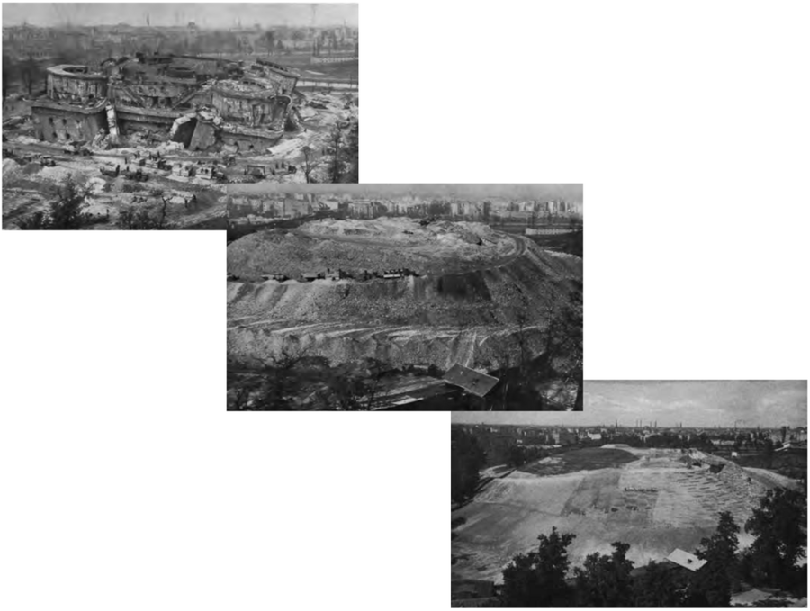 Однако эти планы провалились, а остатки возведённых стен после войны были засыпаны строительным мусором городских руин — так и возникла гора Тойфельсберг. Позже на ней высадили тысячи деревьев, и она превратилась в зелёную зону отдыха.