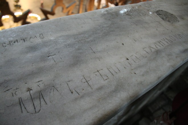 В XV в. в соборе Святой Софии, главном храме Византийской империи, куда в течение многих веков устремлялись паломники со всего мира, сохранилось множество средневековых граффити. На стенах, колоннах и перилах собора находят «автографы» паломников. Большинство из них представляют собой запечатленную в камне молитву: «Господи, помози рабу своему…»