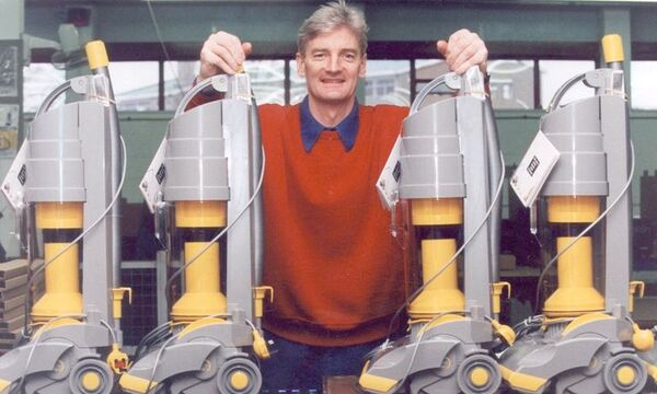 Слева: Ранние модели пылесосов «Dyson», 1993 г.; Справа: Промышленный вакуумный пылесос с дизайном, неизменным с 1990х годов.