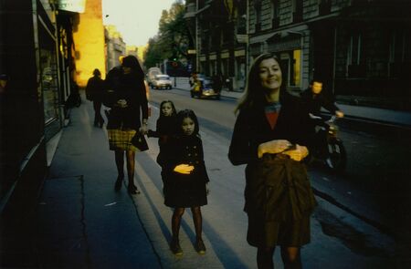 В поздних работах Марка Коэна непреднамеренность становится следствием его радикальной стратегии съёмки: он снимает почти вслепую, резким движением поднося камеру к человеку на очень близкой дистанции. Эти три кадра демонстрируют, как такой подход разрушает привычную логику портрета. Фигуры оказываются частично обрезанными, лица — захваченными в самый непредсказуемый момент, а пространство — смещённым и дезориентирующим. Эти случайные, недостроенные кадры передают ощущение присутствия и непосредственности. В результате фотография перестаёт быть наблюдением со стороны и превращается в прямой опыт уличного взаимодействия.