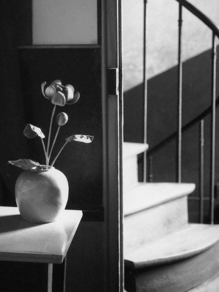 Этот снимок построен на случайной встрече света, тени и пространства: открытая дверь, блик на кувшине, асимметрия лестницы создают чувство тихого, почти случайного наблюдения. Кадр выглядит не как продуманная композиция, а как ускользающий момент в чужом интерьере. Непреднамеренность проявляется в смещении акцентов: важным становится не объект, а общая атмосфера изображения.