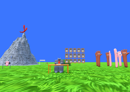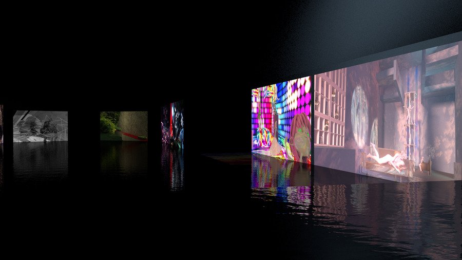 В пространстве галлереии можно увидеть как экспонаты, которые возможно было бы перенести в реальный мир, так и те, которые возможны только в виртуальной реальности.