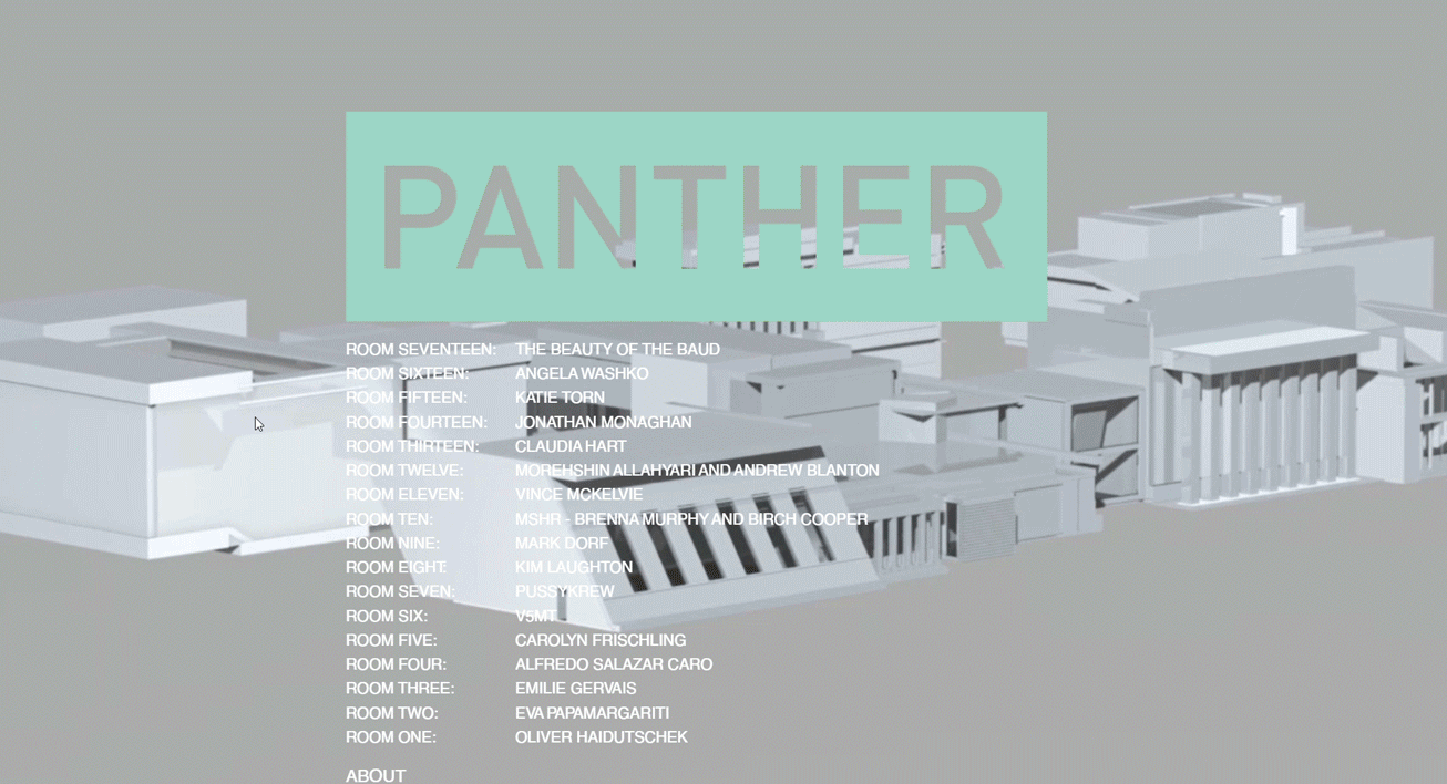 Одним из примеров соединения классического музейного пространства и интернет-технологий может послужить галлерея Panther Modern. Она представляет собой уникальный пример гибридной кураторской стратегии, которая трансформирует саму идею художественного пространства. Платформа существует как виртуальная галерея, состоящая из последовательных виртуальных комнат, создаваемых художниками в 3D-программах. Этот подход уже сам по себе является художественным жестом, так как галерея не имеет фиксированной архитектуры, а постоянно достраивается, превращаясь в «растущий организм».