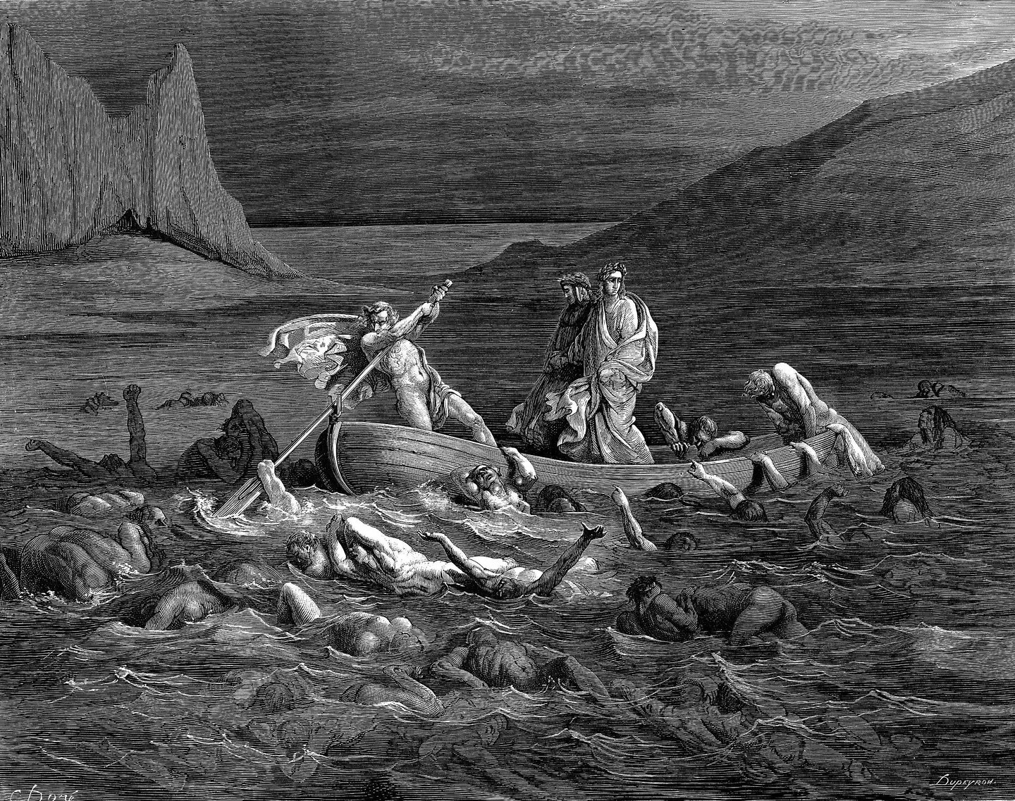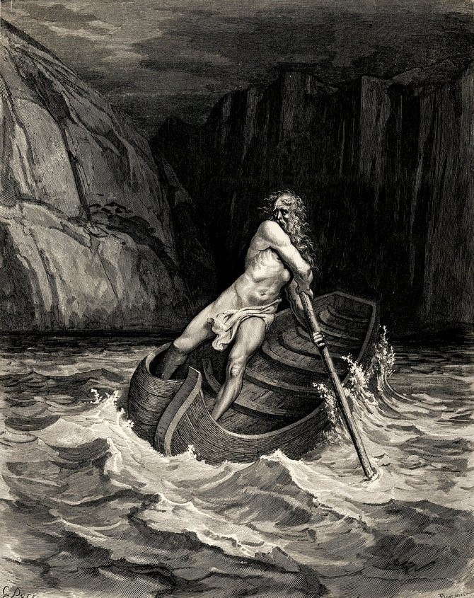 Картина знаменитого Эжена Делакруа, впервые выставленная в Салоне 1822 года, стала художественным манифестом французского романтизма и вызовом господствовавшему в то время академизму. Она иллюстрирует эпизод из восьмой песни «Ада» Данте, где поэт в сопровождении Вергилия переправляется через инфернальную реку на лодке беса Харона.