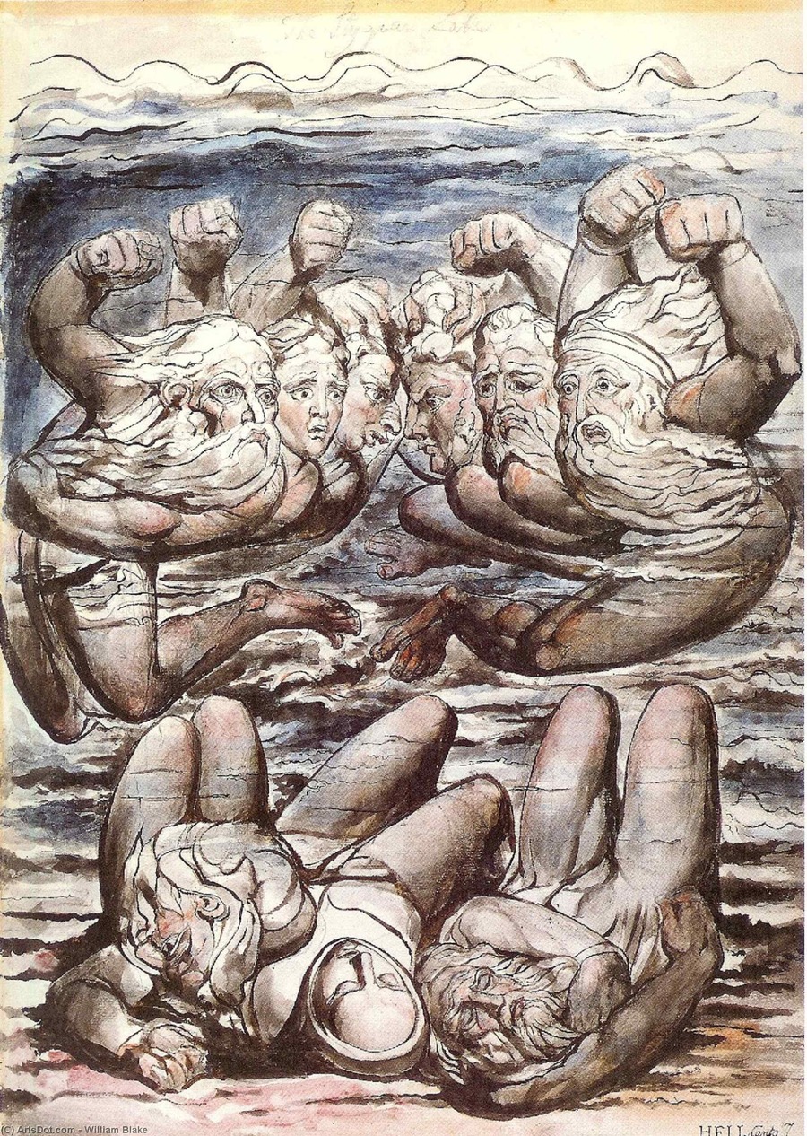 Круг пятый. Гневные в Стигийском болоте | Уильям Блейк | 1824-27 г.