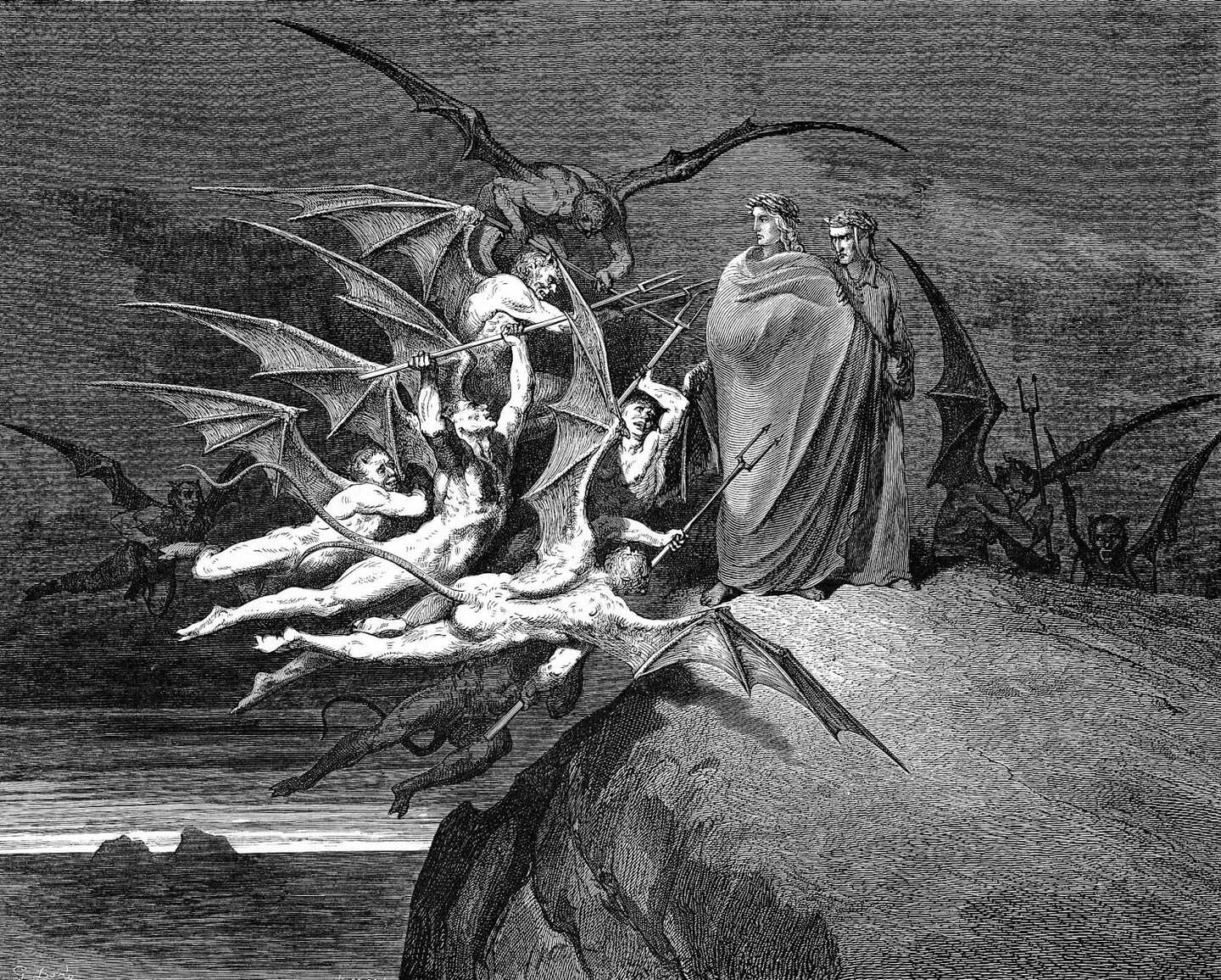 Хотя все три книги эпоса Данте являются влиятельными, «Ад» считается наиболее важной с точки зрения ее влияния на религию и искусство. Никогда ещё Ад не описывался так подробно. Именно по причинам, сказанным выше, художникам XIX столетия было настолько интересно воплотить его на холсте.