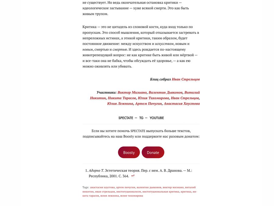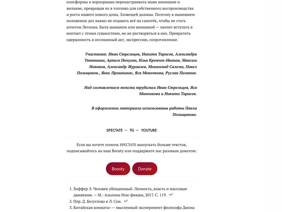 Spectate — это критический вебзин о современной культуре. В этом лонгриде собраны ссылки на мои самостоятельные тексты, которые были опубликованы на сайте Spectate осенью 2025 года во время второго учебного модуля.