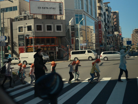 Очень часто на протяжении фильма мы видим сначала Хираяму, и его реакцию, а потом то на что он смотрит, то что вызвало у него эту реакцию. На такой монтажной схеме основаны все многочисленные сцены, когда Хираяма едет в машине.