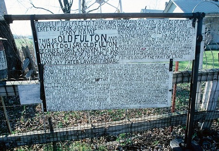 Джесси Клайд Говард (1903–1983) был другим видом проповедника. Если Финстер использовал живопись как средство спасения, а Морган — как средство божественного служения, то Говард использовал текст как средство политического и идеологического протеста. Начиная с 1940-х годов Говард начал размещать по всему участку аккуратно расписанные вручную знаки, покрытые библейскими цитатами, политическими обвинениями против коммунизма и прогрессивизма, а также автобиографическими деталями.