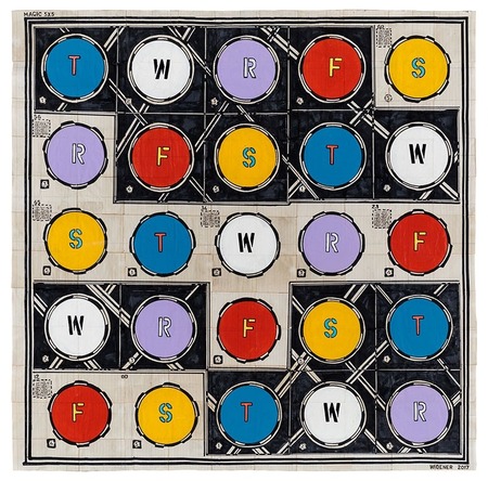 Особенно известны его «магические временные квадраты» (magic time squares) — сетки, где числа заменены датами, которые суммируются в одинаковое значение по всем направлениям