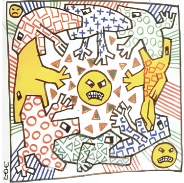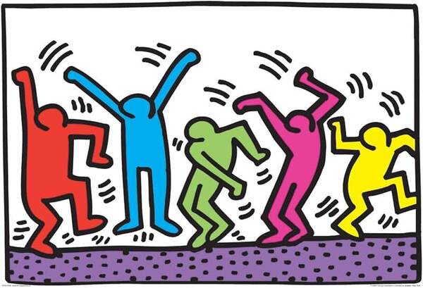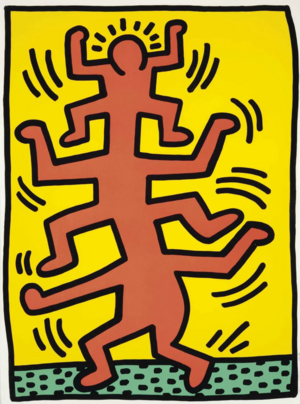 Также для сопоставления, работы Кита Харинга, где на первый взгляд очень похоже человечки несут в себе совершенно другой нарратив.