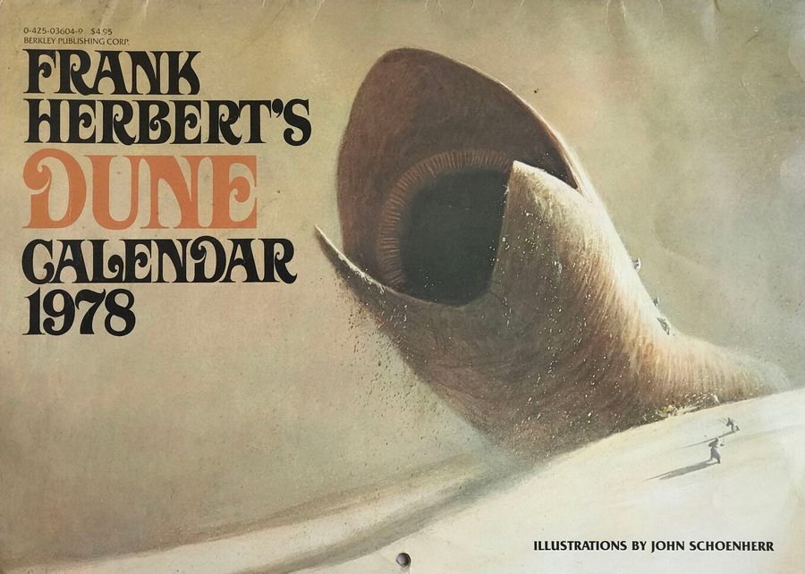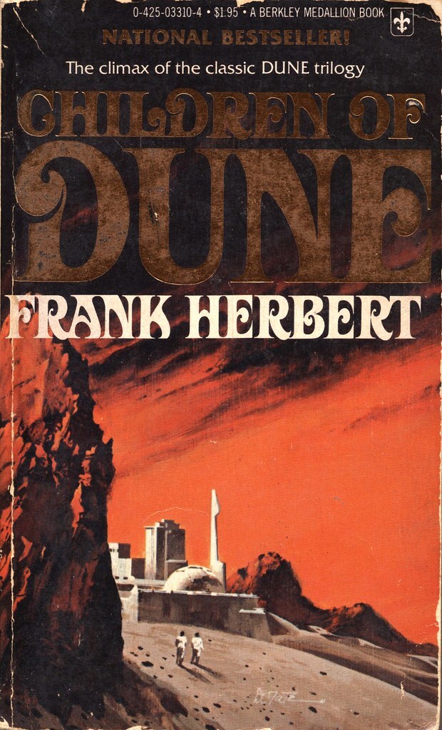 «Дюна» Фрэнка Герберта (1969 год), опубликованная Berkley Medallion в сентябре 1975 года. Художник обложки — Винсент Ди Фейт. За своё существование «Дюна» сменила множество типографических и графических айдентик, но многим фанатам книги запомнилось издание Berkley Medallion благодаря атмосферным иллюстрациям и привлекающему внимание акцидентному шрифту Davison Art Nouveau. Davison Art Nouveau был создан художником шрифтов Майером М. «Дэйвом» Дэвисоном для компании Photo-Lettering. По сути, это насыщенный прописной шрифт с длинными засечками и скругленными переходами, который существует в трех вариантах с нарастающей степенью декоративности: Art Nouveau with Flourishes, Modified и Ornate. Позже, когда издательство выкупило другое — Ace Books, — шрифтом продолжили оформлять другие книги Герберта и даже тематический календарь. Орнаментальный шрифт визуально связал футуристичный мир «Дюны» с ар-нуво, подчёркивая вневременной масштаб саги и её связь с историческими циклами.