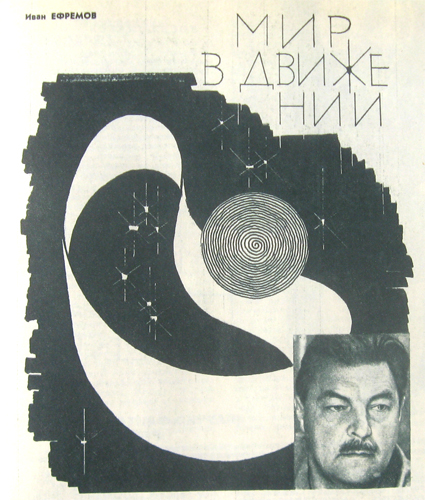 Иван Ефремов — ведущий писатель-фантаст конца 1950-х годов. В соответствии с традициями жанра, его книги и публикации в журналах сопровождались большим количеством иллюстраций. Оформление его произведений относится к классическому советскому дизайну. Первым произведением в главном цикле писателя «Великое Кольцо» стал роман «Туманность Андромеды». Впервые роман был опубликован в журнале «Техника — молодёжи» в 1957 году. На обложке была размещена иллюстрация А. Побединского к роману; внутренние иллюстрации выполнили Н. Кольчицкий, Г. Перова, А. Катковский, Б. Дашков, А. Петров, В. Кащенко, Г. Кычаков, Ю. Случевский, А. Побединский, Т. Конышев и Н. Смольянинов. На обложке изображена девушка, чьи волосы растворяются в космосе, что одновременно передаёт научно-фантастический и философский смысл произведения. Отдельным изданием книга вышла в 1958 году, сохранив на обложке иллюстрацию с девушкой и космосом, а также использовав тонкий, но выразительный шрифт.