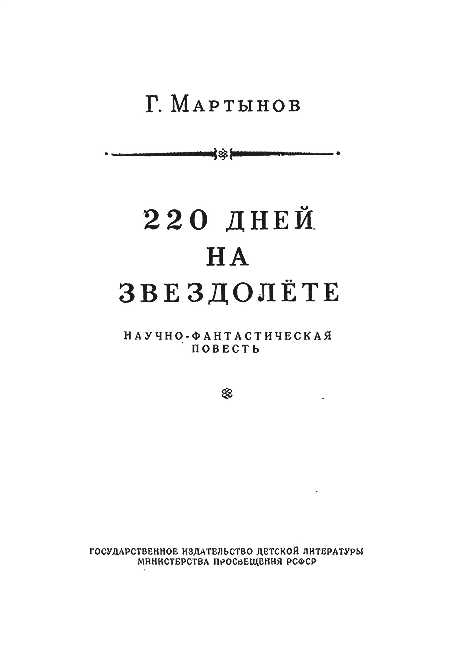 «Звездоплаватели» — научно-фантастическая трилогия советского писателя Георгия Мартынова. Первая книга цикла, «220 дней на звездолёте», была опубликована издательством «Детская литература» в 1955 году с иллюстрациями В. Тамби и Н. Петровой. Обложка оформлена орнаментом вокруг центральной иллюстрации, что характерно для изданий того времени. Внутри, помимо классических чёрно-белых иллюстраций, присутствуют научные схемы, усиливающие атмосферу произведения. Информация об отдельных изданиях следующих книг цикла — «Сестра Земли» и «Наследие Фаэтонцев» — отсутствует. Полностью цикл был издан в 1960 году издательством «Лениздат» с иллюстрациями Л. Рубинштейна. Оформлением обложки с запоминающейся буквой «З», из которой вылетает ракета, занимался О. Маслаков, а шмуцтитулы выполнила Г. Гунькина.