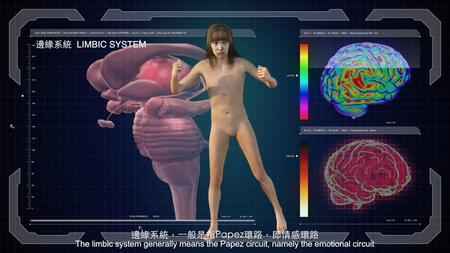 LuYang — «Delusional Mandala» (2015). На стоп-кадре из видеоинсталляции — цифровой аватар художницы LuYang, бесполый гуманоид, созданный на основе 3D-скана ее тела. В проекте «Delusional Mandala» LuYang смоделировала «полное разрушение» собственного тела, стимулируя мозг технологиями нейромаппинга, чтобы вызвать состояние бреда[3]. Эта анимация, показанная на биомедицинских приборах и экранах, визуализирует процесс, в котором самоидентичность художницы стирается, заменяясь цифровым «я». Работа отсылает к буддийской идее «анатта» (отсутствия устойчивого Я) — «мир и личность становятся всё более размытыми… „Я“ оказывается временным и изменчивым конструктом, а не постоянной сущностью»[4].