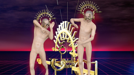 Lawrence Lek — «Nøtel» (2018). Британско-азиатский художник Lawrence Lek создал видеоинсталляцию, имитирующую рекламный офис футуристического отеля без персонала. «Nøtel» — вымышленная сеть «нулезвёздочных» отелей, где «полностью отсутствуют люди — только автоматизация и полный приват». На экране перед зрителем разыгрывается промо-ролик: виртуальные интерьеры идеального умного здания, голос «CEO» обещает постояльцам абсолютную безопасность и секретность[10]. Идеально выверенная 3D-графика, однако, вызывает не комфорт, а холодное беспокойство.
