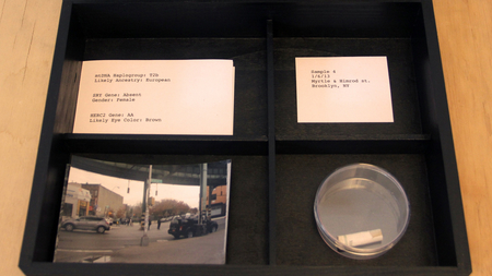 Heather Dewey-Hagborg — «Stranger Visions» (2012–13). На фото трёхмерные портреты лиц неизвестных людей, напечатанные по ДНК, собранной художницей из мусора (волосы, окурки). Она исследует, сколько информации о человеке можно получить из его генетических следов, и создает скульптурные маски «потенциальной внешности» этих незнакомцев[5]. Её проект — тревожное напоминание, что «всё, что делает нас людьми — волосы, кожа, слюна — может стать нашей уязвимостью: любой может собрать их и узнать о нас почти всё»[5].