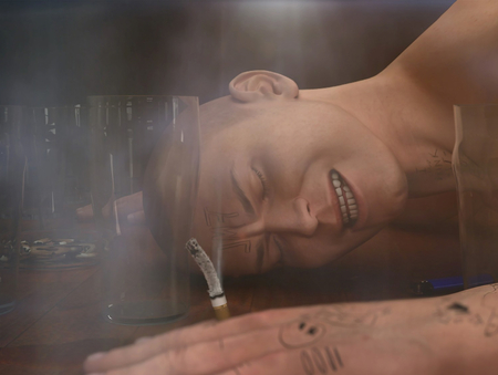Ed Atkins — «Ribbons» (2014). В видеоинсталляции «Ribbons» британский художник Ed Atkins представил гиперреалистичного CGI-персонажа по имени Дейв — голого мужчину-аватара, внешне похожего на автора[12]. Дейв пьёт, курит и обращается к зрителю с отрывочными монологами о тоске, потере любви, своей телесности. Он выглядит почти настоящим, но слегка неестественным: «у него слишком совершенные зубы, глаза движутся как за прорезями маски, мимика иногда сбоит»[12]. Ed Atkins известен тем, что через цифровых персонажей выражает очень человеческие эмоции — депрессию, жажду близости — и тем сильнее подчёркивает их бездонное одиночество. В кульминации «Ribbons» Дейв поёт грустные песни (Баха, Рэнди Ньюмана) в пустом баре, напиваясь до беспамятства[12]. Вокруг слышны только звуки его тела — кашель, отрыжки, плач — и сигналы компьютера. Фраза «Whatever’s real isn’t here, only the desire to be so» — «Что бы ни было реальным, его здесь нет, есть лишь желание, чтобы оно было»[12] — стала крылатой для описания цифровой отчужденности. Ed Atkins показывает страх одиночества через образ идеального, но одинокого аватара: Дэйв — это современный человек, застрявший в экране, недостижимый для подлинного контакта. Его тоска — это тоска всех нас по реальному, человеческому взаимодействию.