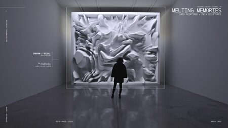 Refik Anadol — «Melting Memories» (2018). Турецко-американский медиа-художник Refik Anadol визуализировал процессы памяти мозга с помощью данных ЭЭГ и нейросетей[36]. Его инсталляция — огромная изогнутая LED-стена, на которой «кипящие завихрения» света и цвета постоянно перетекают друг в друга, напоминают волны или растворяющиеся цветы[16]. Эти узоры генерированы алгоритмом на основе реальной мозговой активности при вспоминании. Память буквально показана как неустойчивая субстанция, которая то появляется, то исчезает. Название «Melting Memories» отсылает к текучести, мимолетности процесса запоминания. Проект сочетается с научными исследованиями, но вызывает прежде всего эмоциональный отклик: завораживая зрителя, он вместе с тем тревожит, потому что подчеркивает «как скоротечны на самом деле воспоминания»[17].