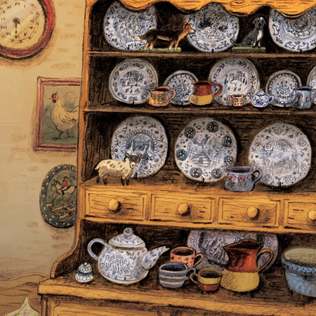 Гармоничное сочетание тонких линий и аккуратно выписанных деталей, вплоть до узоров на маленьком чайнике или каминном коврике, в сочетании с некоторой небрежностью и неоднородностью карандашной текстуры придаёт иллюстрации особую живость и очарование, добавляя уюта общей атмосфере.