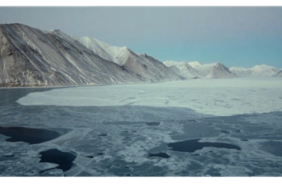 Третий фильм «Территория» 2015. Фильм о советской геологоразведке. Мы видим открытые ледники, склоны, безлюдные поля. Человек лишь часть огромной стихии. В таком пространстве только труд становится для героев формой самоидентификации. Север тут не фон, а проект сообщения людей. Север как пространство действия.