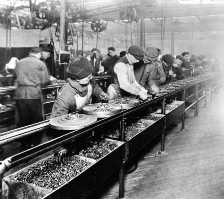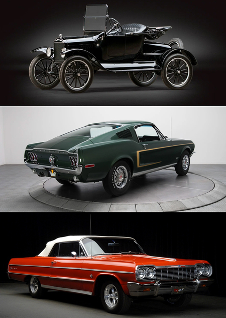 Как уже было ранее сказано, Генри Форд первым внедрил конвейерное производство на завод автомобилестроения. Автомобиль марки, название которой одноименно с фамилией отца-основателя — Ford, модель T стал первым детищем конвейерного производства, в котором прослеживается не только функциональность, но и дизайн. Американцы прозвали её Железной Лиззи. Всего было выпущено чуть более 15 миллионов экземпляров. Таким образом, Ford model T стал первым массовым и доступным автомобилем.