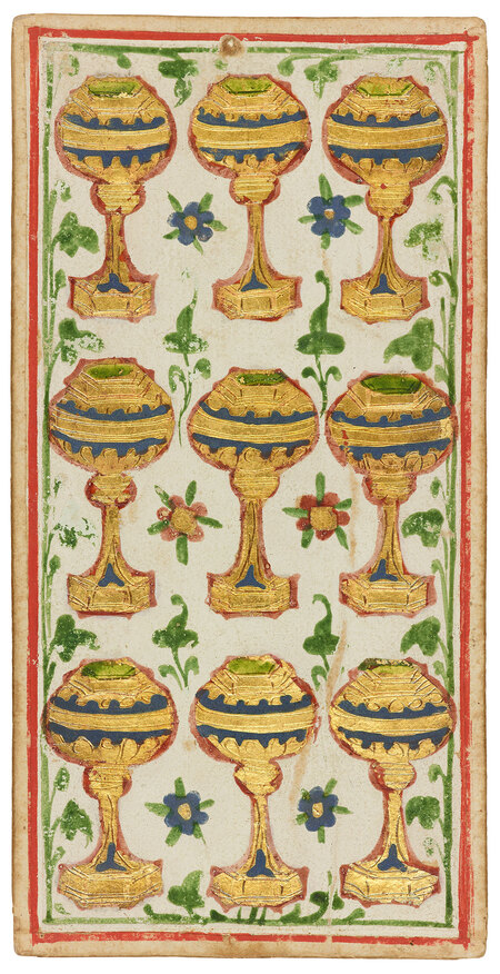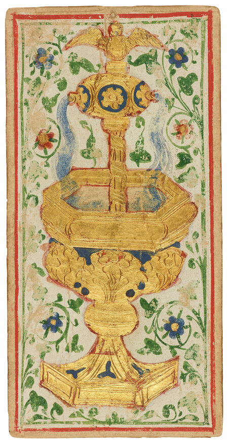 Ace of Cups, Nine of Cups Pierpont-Morgan Bergamo Visconti-Sforza Tarot Cards 1450 The Morgan Library Museum