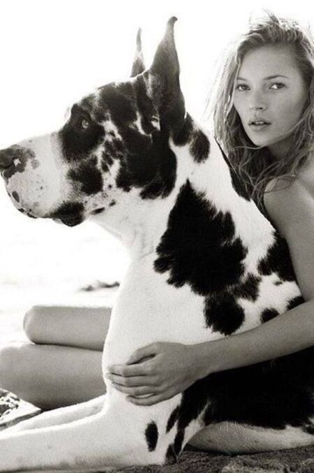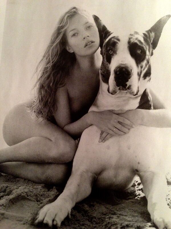 Обнаженная Кейт Мосс собакой, Герб Ритц, 1994 Нежная Кейт Мосс с бейби фэйсом рядом с крупнейшей в мире собакой.