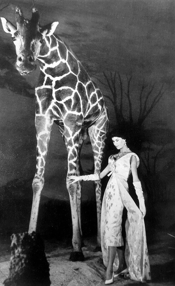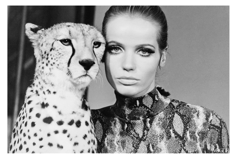 Аведон старался выводить моделей из студии и часто фотографировал их с животными ради создания «полуфантастических» историй. .