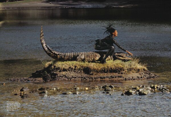 В сентябре 2009 Harper’s Bazaar опубликовал серию «Wild Things», где Наоми Кэмпбелл запечатлена в окружении крокодила, слона и гепарда. В эпоху цифровых медиа животных в моде всё реже используют как статусный символ — теперь чаще как эмоциональный или провокационный образ. Здесь как мне кажется очень выразительно и удачно получилось отобразить характер животных и несмотря на очень модный и даже слега вычурный образ модели чувствуется дружба с природой.