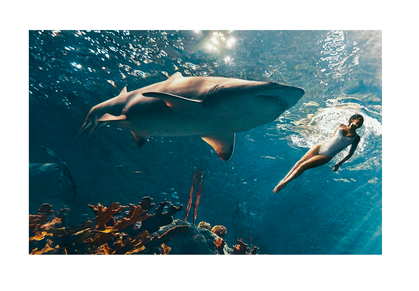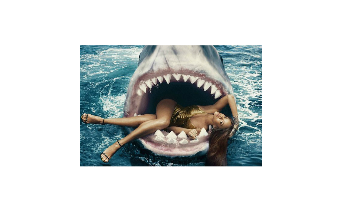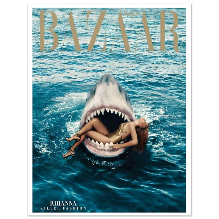 Еще одна деркзая и шокирующая идея фотосессия Рианы для журнала Harper’s Bazaar за март 2015 года, на которой изображена певица в пасти акулы. Съёмки фотосессии состоялись в декабре 2014 года в океанариуме Тампы (штат Флорида). Рианна искупалась в аквариуме с тремя настоящими тигровыми акулами.
